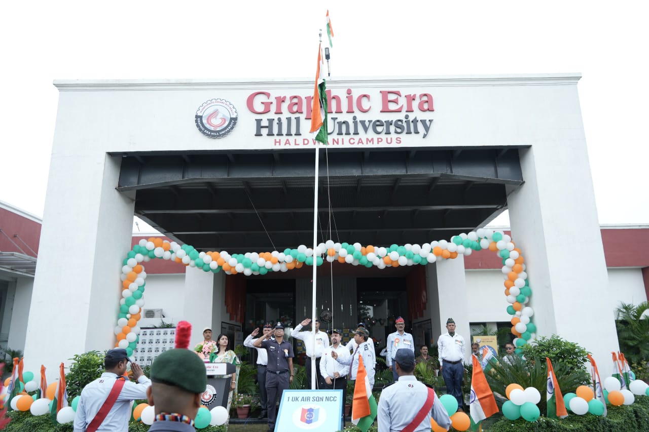 हल्द्वानी – ग्राफिक एरा हिल यूनिवर्सिटी, हल्द्वानी में 79वां स्वतंत्रता दिवस पूरे जो के साथ मनाया गया। विश्वविद्यालय का परिसर देशभक्ति के नारों और सांस्कृतिक कार्यक्रमों से गूंज उठा।